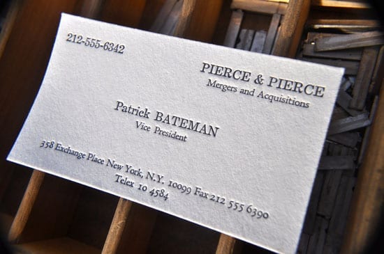 An American in the bar at the Bulgari told his Italian friend: “My card is embossed and it is definitely as good as Patrick Bateman’s but a guy gave me his and I was outdone. It was A4 in size and embossed. I had to hole punch it to file it. Turns out he was a f**king dictator. He lives somewhere in Africa in a little hut but the little b*****d managed to out business card me”. The shame.