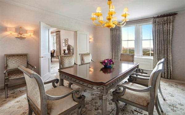 Aside from having the privacy that stems from occupying the entire 39th floor, tenants will benefit from a private elevator and full hotel services including butler services, a 24/7 concierge, “pet pampering”, twice daily maid service and use of the hotel’s chauffeur-driven Jaguar. The marketing agent describes it as “truly fit for a CEO, royalty or head of state”.