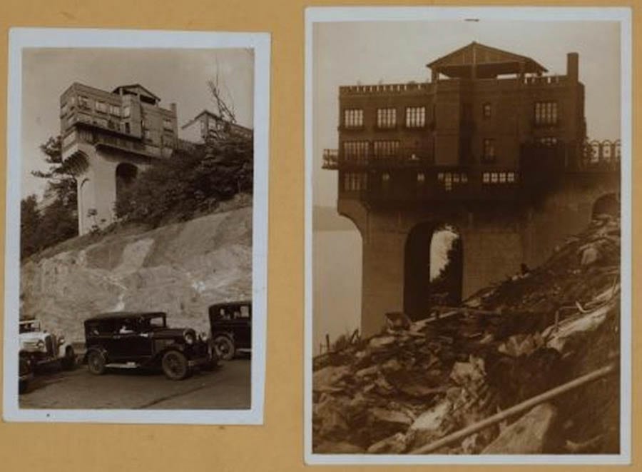 Built on a steel foundation in 1925 by an engineer and “sort of a dreamer” named Cleveland Walcutt and referenced by The New York Times in 2008 as “a face in the crowd”, ‘The Pumpkin House’ was owned by an interior designer named William Spink from 2000 to 2011. During the renovations he orchestrated, a construction worker fell off the building and was seriously injured but what potential buyers will either love or loathe about this architectural miracle suspended over a 265-foot drop is that it truly is utterly eccentric.