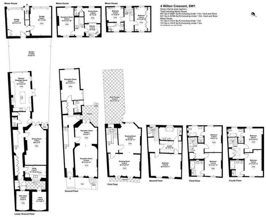 4 Wilton Crescent – which sold in 1997 for what now seems like the paltry sum of just £695,000 – was marketed two years ago for £32 million and provides 5 reception rooms, 9 bedrooms, 7 bathrooms and 2 garages in an adjoining mews house.