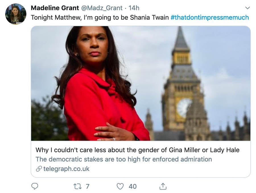 “I don’t hack, I just have a great rack” rent-a-gob Madeline Grant’s attack on Gina Miller is uncalled for and below the standard of what one expects from ‘The Telegraph’