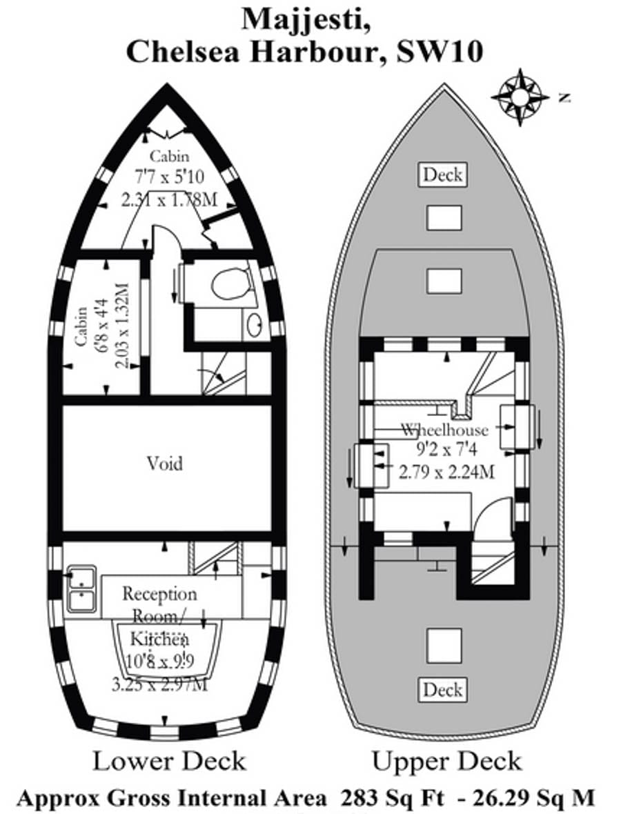 Cheap in Chelsea – 283 square foot boat in Chelsea Harbour for £55k – An affordable way to live in a two bedroom property in Chelsea, London for just £194 per square foot – £55,000 ($73,000, €62,000 or درهم269,000) for boat named Majjasti through River Homes.