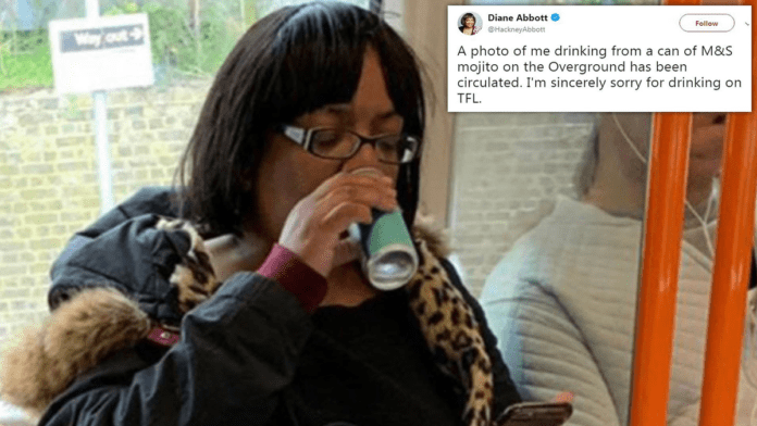 Pictured Top – Previously, after drinking alcohol on a tube train, this wack job woman declared: “A photo of me drinking from a can of M&S mojito on the Overground has been circulated. I’m sincerely sorry for drinking on TFL.”