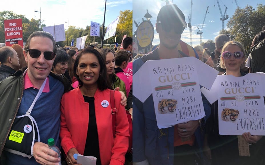 I met people who’d traveled from places as diverse as Australia, Brussels and Rotherham and I must say some of the placards were brilliant. Ranging from the witty ‘No Deal Means Gucci Will Be More Expensive’ to the plain but clear ‘Brexit? More Like Brexshit,’ attendees got creative. Whilst a woman appeared dressed in a somewhat sexually provocative police costume with a poster claiming: ‘Political Sensitivities My Arse @MetPoliceUK Don’t Let Vote Leave Criminals Off The Hook,’ I also spotted a Boris Johnson lookalike waving and even a poor woman stranded on Park Lane in her G-Wagen.