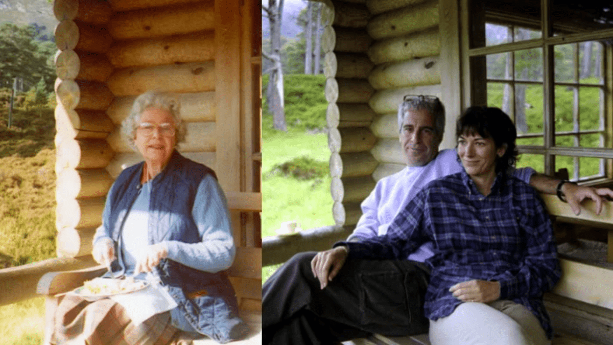 Pictured top – The late, great Her Majesty Queen Elizabeth II at a cabin on her Balmoral estate in Soctland (left) and the late, anything but great Jeffrey Epstein and his wicked wastrel cohort Ghislaine Maxwell sitting on the deck at the same cabin on a separate occasion. Naturally, crackpots have all sorts of stupid theories about this pure coincidence.