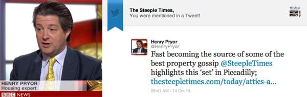 This morning a tweet from the property expert Henry Pryor provided a very welcome endorsement of another area that we are becoming well known for. It read: