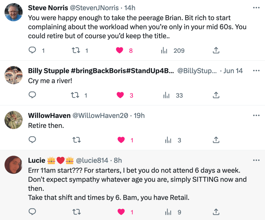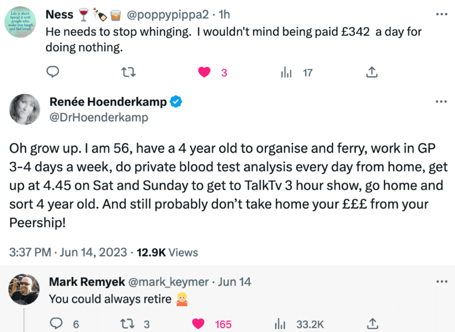 Yesterday, however, elsewhere on Twitter, another politician proved himself utterly ludicrous when he whined and whinged about his working hours being too long. In spite of being able to access a daily allowance rate of an astonishing £342 per day for sitting from 11am only, former policeman turned prattling pillock Lord Paddick moaned: