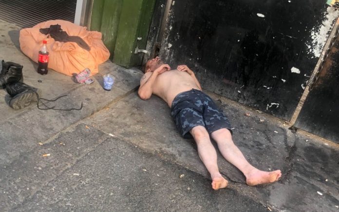 He needs to be hosed down and deloused!!!!!!!!! Probably an immigrant!!!!!!!!!!!! Deport him!!!!!!!!!!!!! Clean up your streets and back Brexit!!!!!!!!!!! And Boris!!!!!!!!!!!! And Trump!!!!!!!!!!!!!!!!