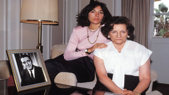 Pictured top – A glum looking Ghislaine Maxwell with her now late mother and a photograph of her late father. Though some have lauded the now convicted sex offender’s mother as a “good woman,” others have argued that she had an equally wicked and warped sense of morals to her clearly completely lacking in a moral compass husband.