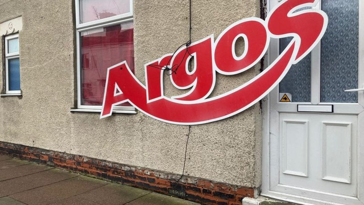 Grimsby resident takes with good humour someone attaching an Argos sign to his house on New Year’s Day whilst journalist reporting story of it goes all Miss Marple