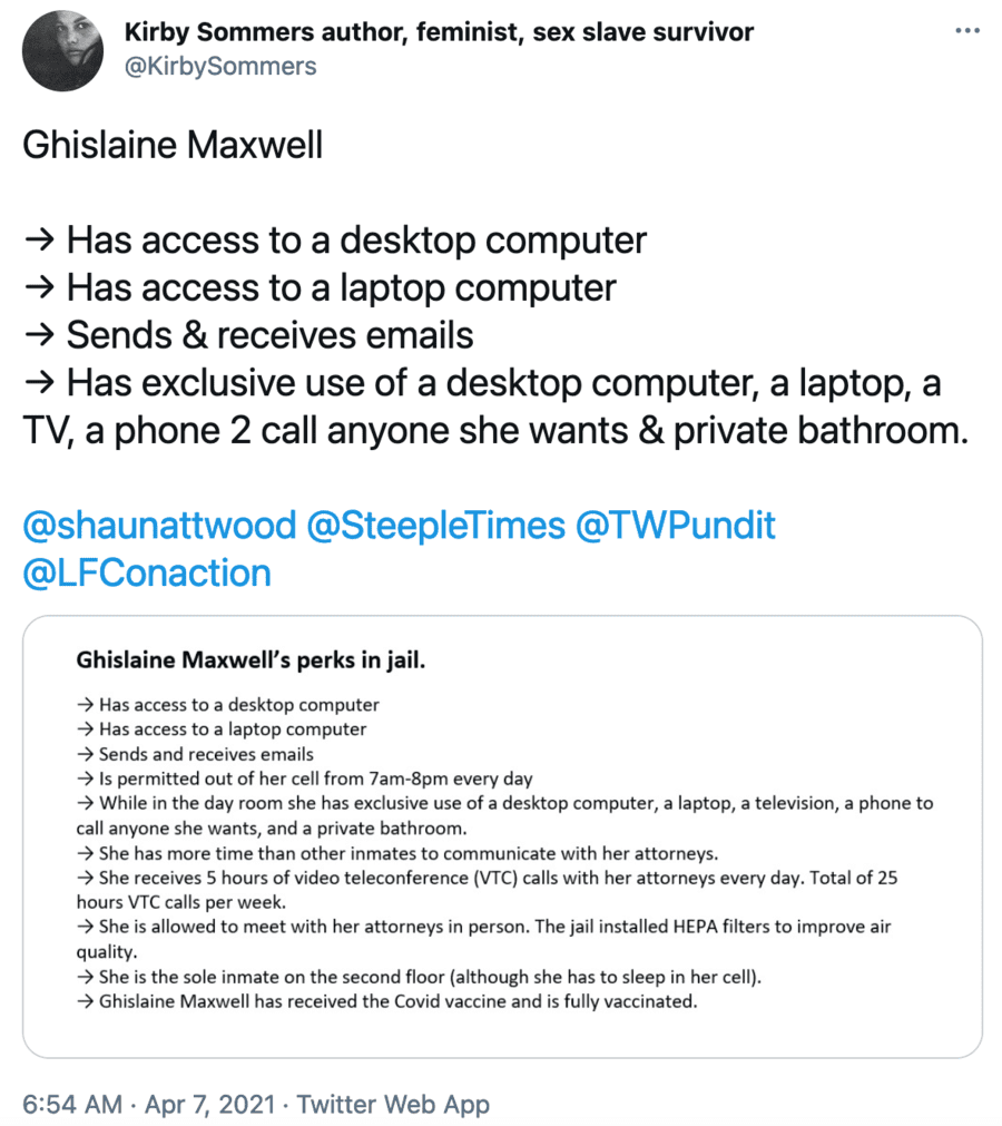 As we suggested of the apparently anything but respectful of the young girls she supposedly trafficked ‘Moaning Maxwell’ in August 2020: “What’ll she be requiring next? Room service and caviar and Krug champagne on tap?”