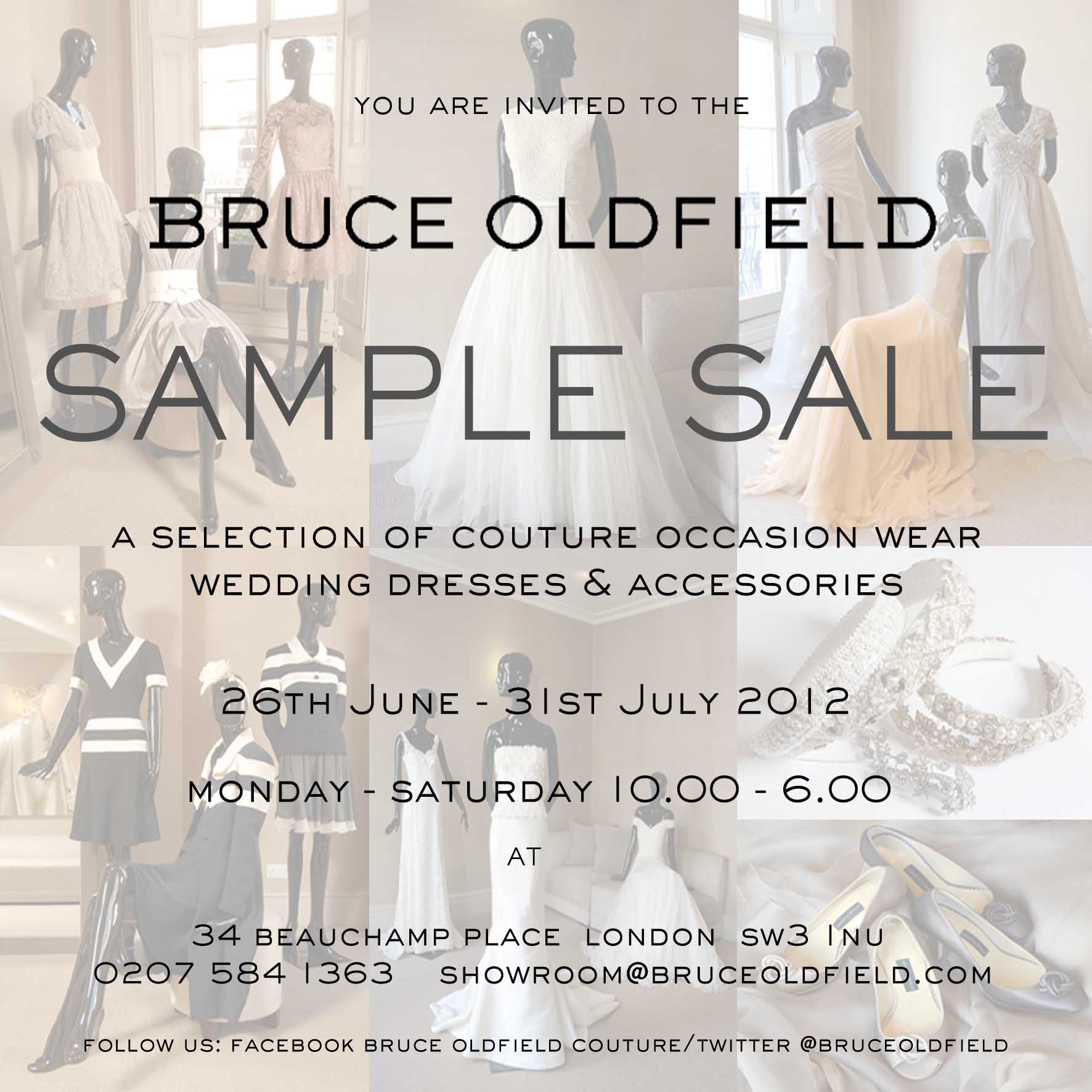 Between the 26th June and 31st July, Bruce Oldfield is holding a sample sale at his Beauchamp Place showroom where he will offer a selection of couture occasion wear, wedding dresses and accessories.