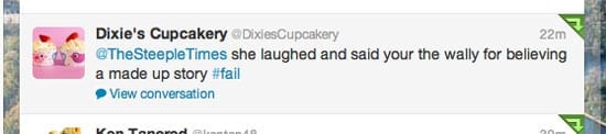 Our first ‘Wally of the Week’, Katie Price (or whatever she’s now called), kept quiet. Our second, a cupcake maker turned contestant on The Apprentice let her rottweilers out after we shared the Sunday People’s story about her posing “topless, snogging girls and partying”. The St Albans based firm she founded, Dixie’s Cupcakery, tweeted us today to say we’d believed a “made up story #fail”.