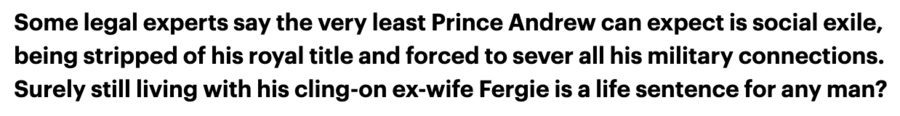 In ‘Farting Fergie’ – a woman described in The Sunday Telegraph last weekend by an ‘insider’ as a spendaholic for whom “it doesn’t matter how much money she has, it just seems to slip through her fingers” – the queen’s supposed “favourite son” has a noose round his neck.