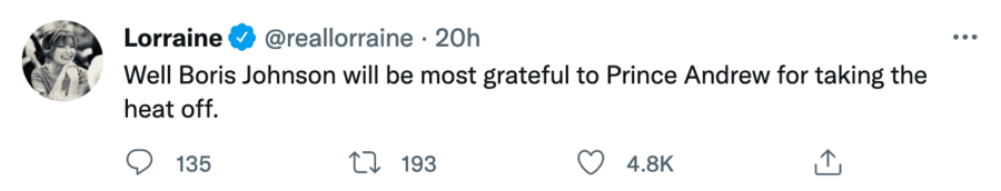 Boris Johnson can’t help telling porkie pies and nor can the Duke of York. Equally, the pugnacious pair of them have a problem with keeping their members in their pants and with each of them in frankly boiling hot water right now, it is time for them to both simply go.