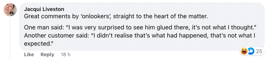 “One man said: ‘I was very surprised to see him glued there, it’s not what I thought.’ Another customer said: ‘I didn’t realise that’s what had happened, that’s not what I expected.’”