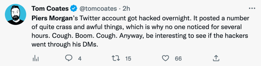 Twitter users reacts to Piers Morgan’s account being hacked…