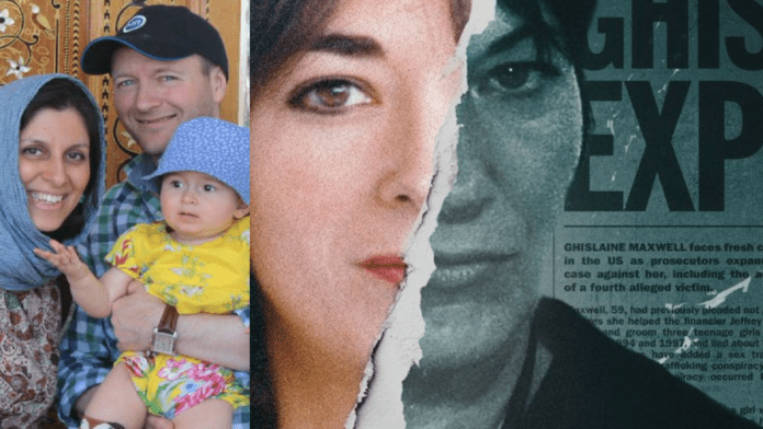 Now, unlike the entirely innocent and wrongly incarcerated Nazanin Zaghhari-Ratcliffe, rightly certain to spend the rest of her days rotting in the clink, mucky madam Ghislaine Maxwell (pictured in happier times with her father’s rival, Rupert Murdoch) will never again be called a “socialite.”
