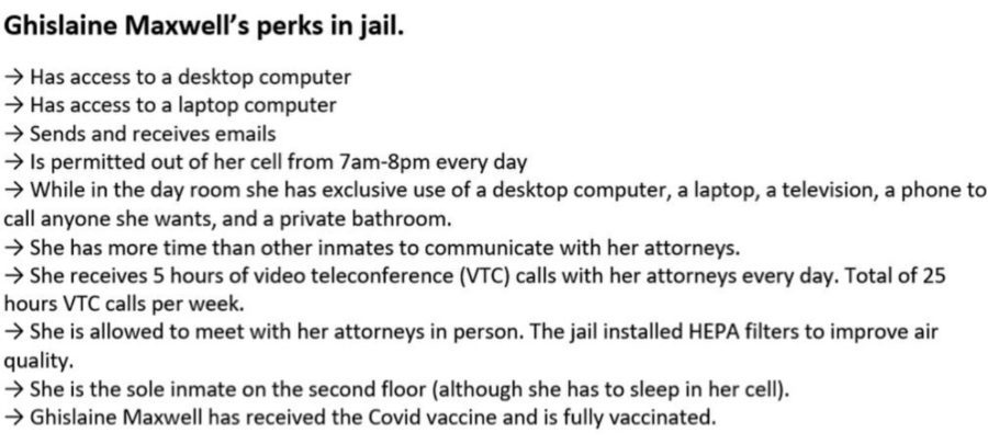 - Maxwell’s lawyer’s release of the image of her with a black eye – which they claimed to have been caused by abuse by guards – turned out to be an example of fake news. She had actually simply suffered from an eye infection.