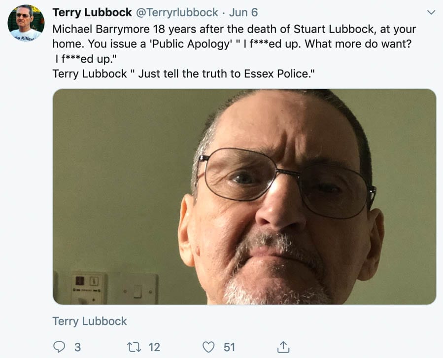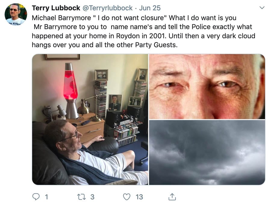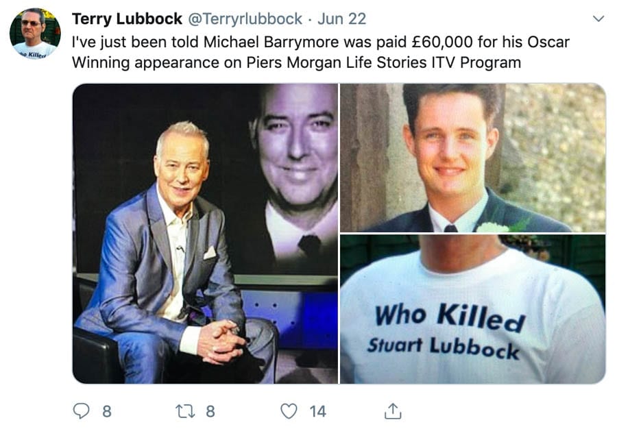 That Barrymore is someone who can be thought of as “hilarious” and having “comic impact” is utterly preposterous and that he was also supposedly paid £60,000 for an interview with Piers Morgan (according to Terry Lubbock, Stuart Lubbock’s father) in June 2019 is both highly distasteful and inappropriate.