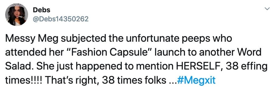 The Duchess of Sussex is about one thing and that is herself. This former actress continues to act up and since marrying into the royal family has proven herself to be nothing but shameless. This week, however, this ridiculously annoying woman excelled herself and referenced her very own person 38 times during a speech.
