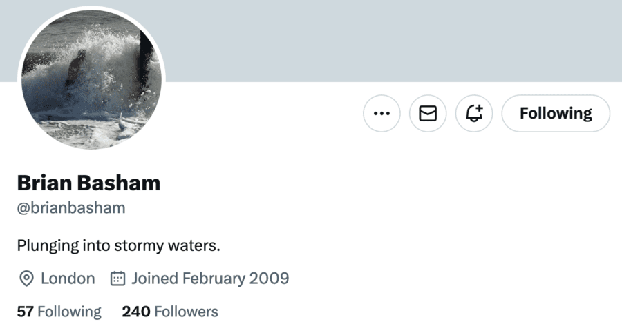 In spite of threatening to confront me at the 2022 edition of CrimeCon in London (and then being a Cowary Custard no-show), Mr Basham seems to have given up on Twitter. Though not exactly popular there – a tittle-tattling spinner during the era of the British Airways ‘Dirty Tricks’ campaign against the equally rambunctious Sir Richard Branson’s Virgin Atlantic – has not tweeted since 2nd July 2022 and not replied to a tweet since 14th September that year also.