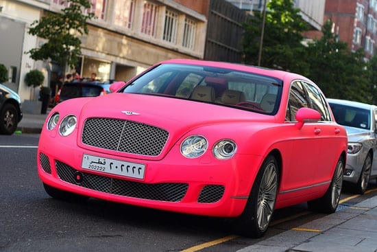 In the Bentley showroom on Berkeley Square, a potential purchaser was overheard to ask a salesman: “Can I have it with a pink leather interior?” The unfazed salesman responded: “Certainly madam”. A Katie Price in the making?