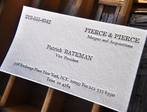 An American in the bar at the Bulgari told his Italian friend: “My card is embossed and it is definitely as good as Patrick Bateman’s but a guy gave me his and I was outdone. It was A4 in size and embossed. I had to hole punch it to file it. Turns out he was a f**king dictator. He lives somewhere in Africa in a little hut but the little b*****d managed to out business card me”. The shame.