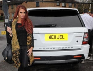 Read the Mail Online’s report about WE11 JEL at: http://www.dailymail.co.uk/tvshowbiz/article-2238775/Former-TOWIE-star-Amy-Childs-shows-customised-licence-plates–cost-80-000-privilege.html