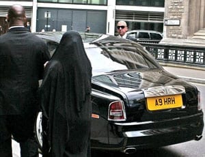 Plainly this upset Al Amoudi as she was escorted from the High Court after becoming “tearful” by three minders (one of whom had been deployed to carry her handbag). As she left, in a full veil and burka, she climbed into a waiting Rolls-Royce Phantom complete with the plate A9 HRH. She will return to give evidence herself in the coming days.
