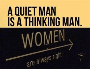“A quiet man is a thinking man. A quiet woman is usually mad”.