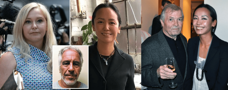 Rina Oh now lauds herself as “producing art therapy with children” and an “longtime advocate of healthy eating for children” but also has been accused of doing far worse things to youngsters by Virginia Roberts Giuffre. Ms Oh is quite proud of her work with children, chefs and restaurateurs like Jacques Pépin (pictured far right) and Dave Arnold and even has a blog named ‘Dining With Out-Laws.’ She is far quieter about her time as the supposed girlfriend of Jeffrey Epstein.Rina Oh – according to the podcast ‘The Recruiters: Broken: Seeking Justice’ – has suggested the 10th March 2001 photograph of Ghislaine Maxwell, Prince Andrew and Virginia Roberts at 44 Kinnerton Street, Belgravia, London to be a “composite” and not genuine. Ms Oh has produced paintings herself of Jeffrey Epstein as Bacchus, Ghislaine Maxwell “nude in The Garden of Sin (like Eve)” and also sketched images of the pension pot plunderer Robert Maxwell also; her husband, Vincent Amen, was a “a former Michael Jackson employee who was named as one of five alleged unindicted co-conspirators in the late star’s unsuccessful 2005 molestation trial. Mr Amen denied the allegations.” Michael Thomas, a New Zealand photographer, who photographed the original 10th March 2001 image in 2011 responded: “As I have said before, it was just an ordinary photo you would have got from a chemist in the days of negatives. Surely, if it was fake, every media outlet in the world would be getting sued for using it. The fact that isn’t happening, to me says everything… It wasn’t like [Roberts Giuffre] pulled the photo of Prince Andrew out, it was just in among the rest of them. They were just typical teenage snaps. There’s no way that photo is fake.”