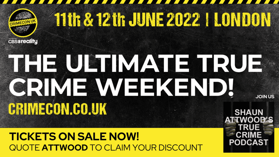 To book tickets to CrimeCon London 2022 partnered by CBS Reality, click here and use the discount code ATTWOOD to get 10% off ticket prices. The weekend event runs over two days from 11th to 12th June 2022.