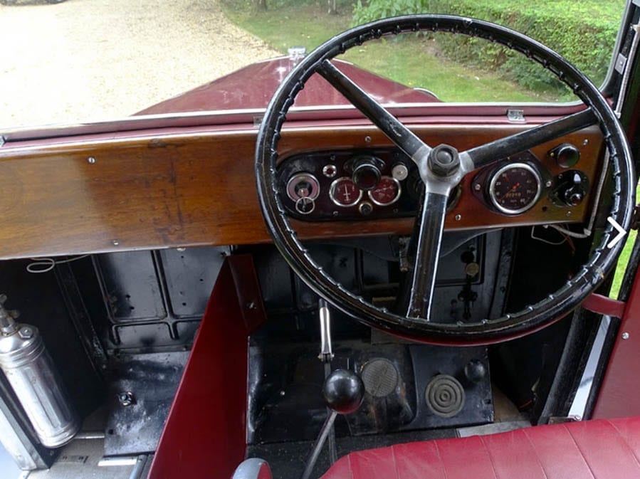 The maroon and black vehicle was used in London before the Second World War and up until 1955, participated in the London to Brighton Historic Commercial Run in 1964 and then was left in a lock-up in Gravesend, Kent until the 1980s. Restored and returned to the road in 2003, the car is described as being in “presentable” condition.