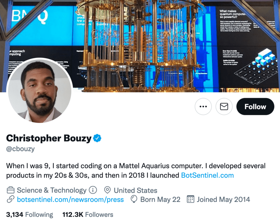 Example Troll – @cbouzy (Christopher Bouzy, BotSentinel)