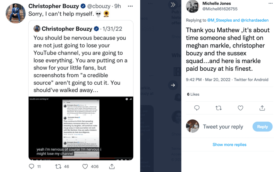 ‘Blue ticked’ by Twitter in spite of being nothing but a nasty piece of toerag, Christopher Bouzy targets anyone who dares speak out against those he’d love to be more closely involved with – namely the Duchess of Sussex and Amber Heard. He has a past clearly chequered and peppered with questionable episodes. It’s no surprise that one of Ghislaine Maxwell’s favoured mouthpieces, Jay Beecher, associates with him.