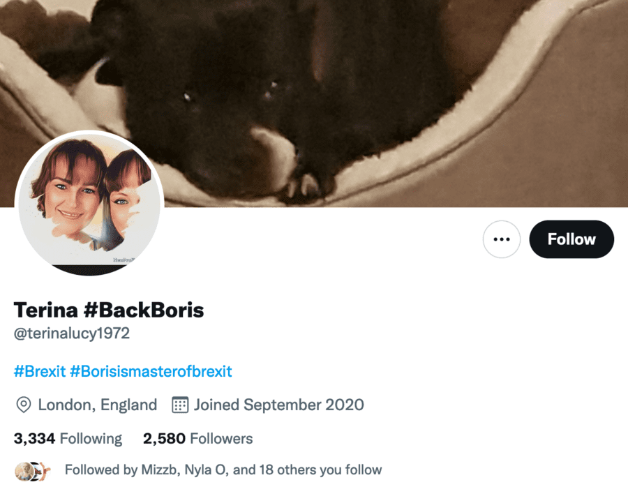 The not-so-lovely London based Lucy Terina unsurprisingly backs Brexit and as well as hash-tagging that also adds: #Borisismasterofbrexit. That’s she a big fan of Tommy Robinson leads to only one conclusion about this brazen bigot and that is: “How terribly predictable.”