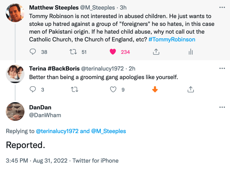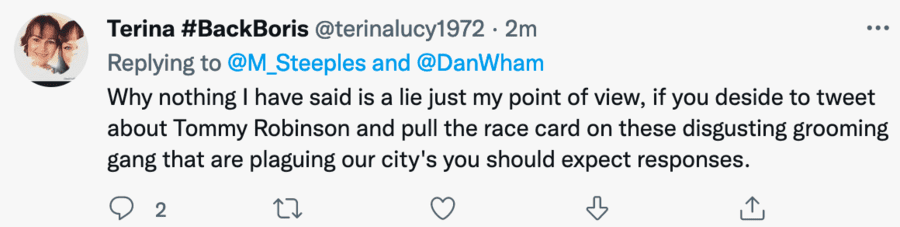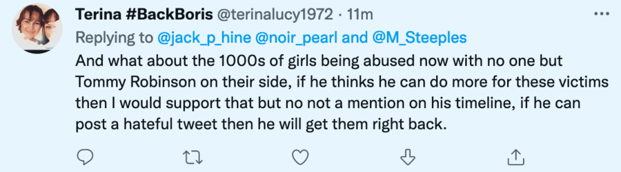 Yesterday, when rabid racist Robinson was trending on Twitter over his hate-stoking towards Pakistani men, I dared to suggest that it rather suited his narrative of profiteering from the somewhat beyond stupid supporters who’ve funded his lifestyle for long now, I was met with comments that included suggestions that I was a “grooming gang apologist” and indeed a “nonce” myself.
