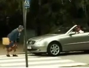 A Mercedes-Benz driver comes to regret taking on an old lady