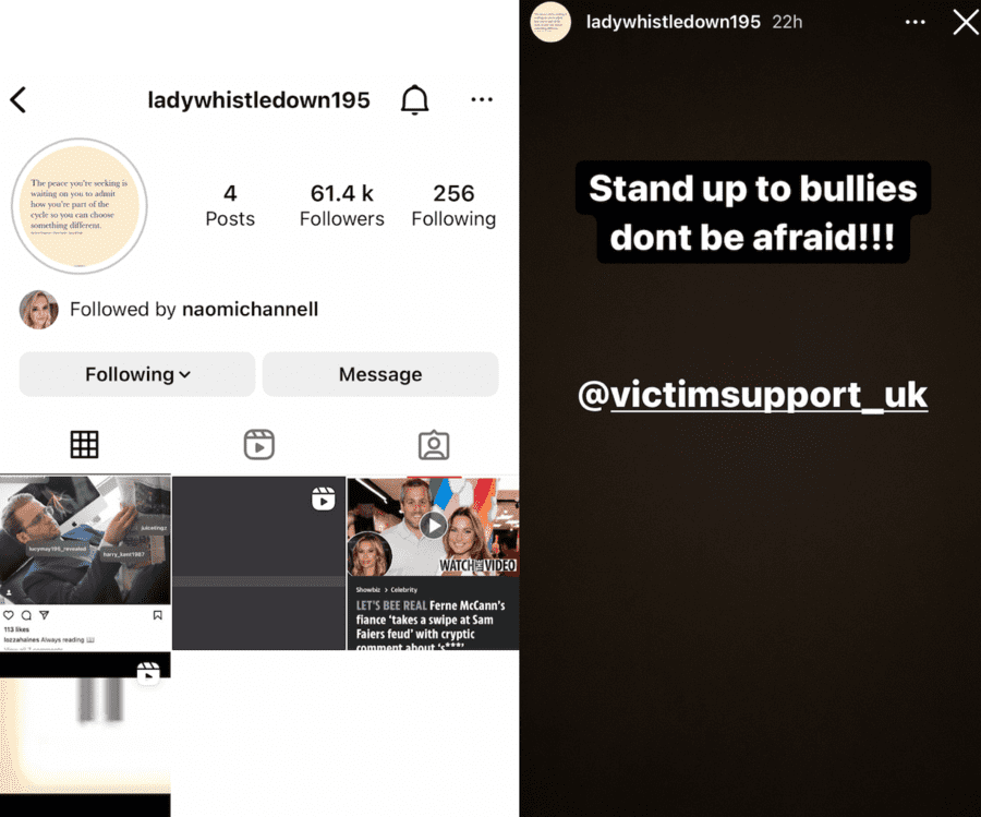 Be sure to follow @ladywhistledown195 on Instagram; you’ll learn plenty about Ferne McCann’s vile views about her acid chucking ex-fiancé and her abhorrent views about his 16 innocent victims