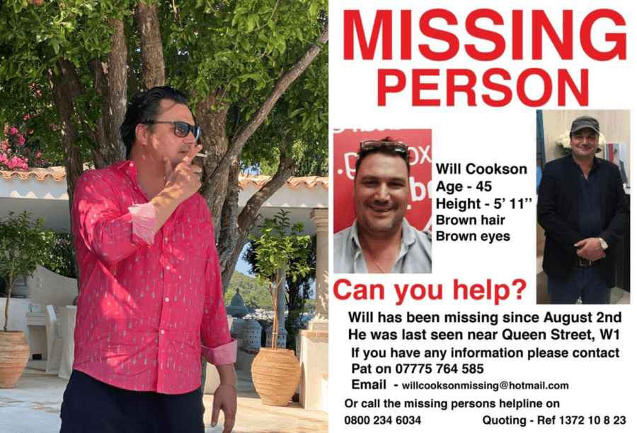 45-year-old Will is 5’11” tall, has brown hair and brown eyes and went missing at the beginning of August. His car, a white Suzuki, was last seen in Queen Street Mayfair and though there have been various sightings of him in Old Brompton Road, South Kensington and Kensington Church Street, Kensington since, his now understandably worried family and friends have been unable to make contact with him via telephone and through social media channels for some considerable time.