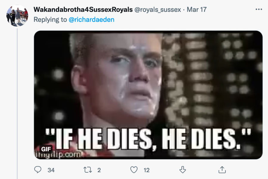 Elsewhere on Friday the Daily Express reported that after the Daily Mail diarist Richard Eden shared news that he had contracted coronavirus, a clear ‘Sussex Squad’ supporter with the handle @royals_sussex trolled him with a meme featuring the reprehensibly vindictive words: “If he dies, he dies.”