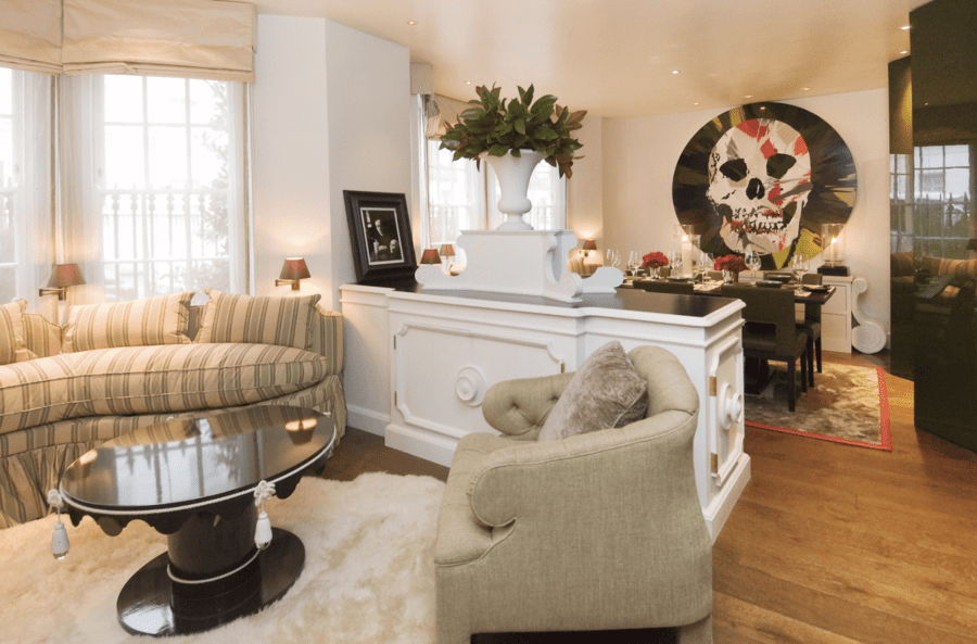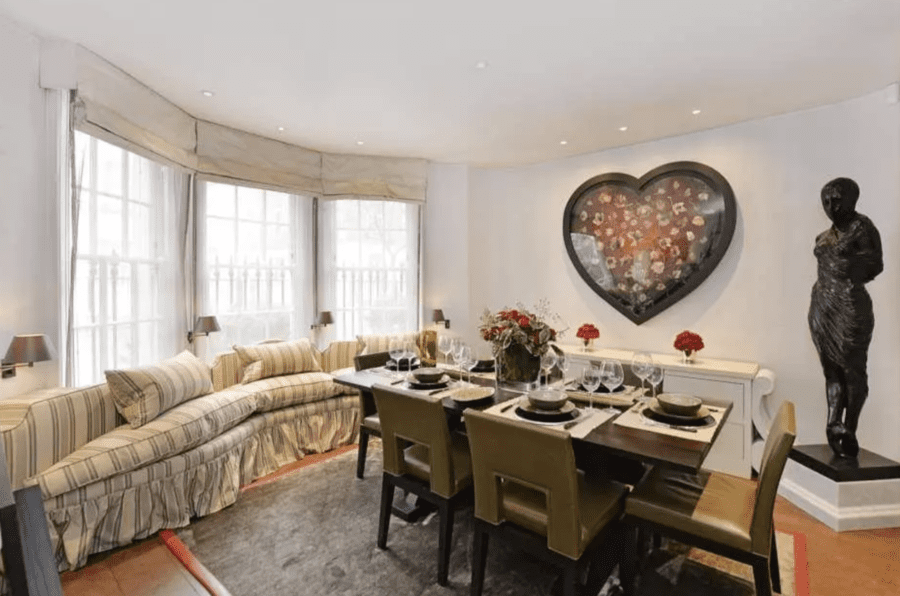 50a Eaton Square has had a curious history. In 1992, it was listed as the final address of the fourth and last Baron of Southborough on his death and subsequently, in 2009, it was sold to a “British music executive” according to Financial News. In 2010, he commissioned the renowned interior designer Nicky Haslam to turn it into a “trophy home” and the “epitome of comfortable luxury.” It now includes not only air conditioning and underfloor heating, but also has “secret drawers for DVDs” and “display cabinets for watches and sunglasses.”
