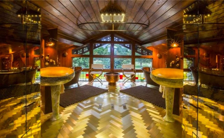 Now marketed by Savills on behalf of LPA Receivers, the Grade II listed chalet was imported from Switzerland in 1882. It includes an indoor 69-foot man-made beach filled with 40 tonnes of sand, a dining room with an especially vulgar 18-seat Swarovski crystal table and a kitchen with just what any budding Mary Berry couldn’t live without – five Gaggenau fridges.