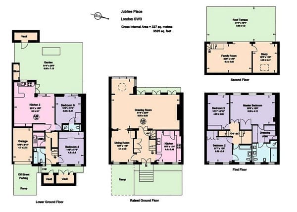 Featuring 3,525 square foot of accommodation and arranged over four floors, 9 Jubilee Place is currently configured to provide 3 reception rooms, 5 bedrooms, 4 bathrooms and 2 kitchens. Ramped off-street parking leads to a single garage whilst there are gardens to the front and rear and a second floor roof terrace.