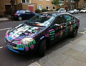 I’ve just read this article about me and my Nissan primera and its fine. I don’t know who hacked into my email and wrote the above but it wasn’t me. I have 22 years clean driving record and decorated the car as a bit of fun really, after someone scratched it the day after I bought it from Nyetimber in Chichester. It was parked well in a residents bay outside my home in Drayton Gardens SW10. I had some iridescent navy blue nail varnish in my bag, painted over the scratch and made a little flower at the end…. the rest happened over the next month or so. Sadly, the car was stolen 3 and half months later on September 23rd 2013. I did have fun driving it. Janie