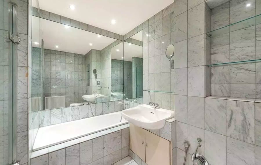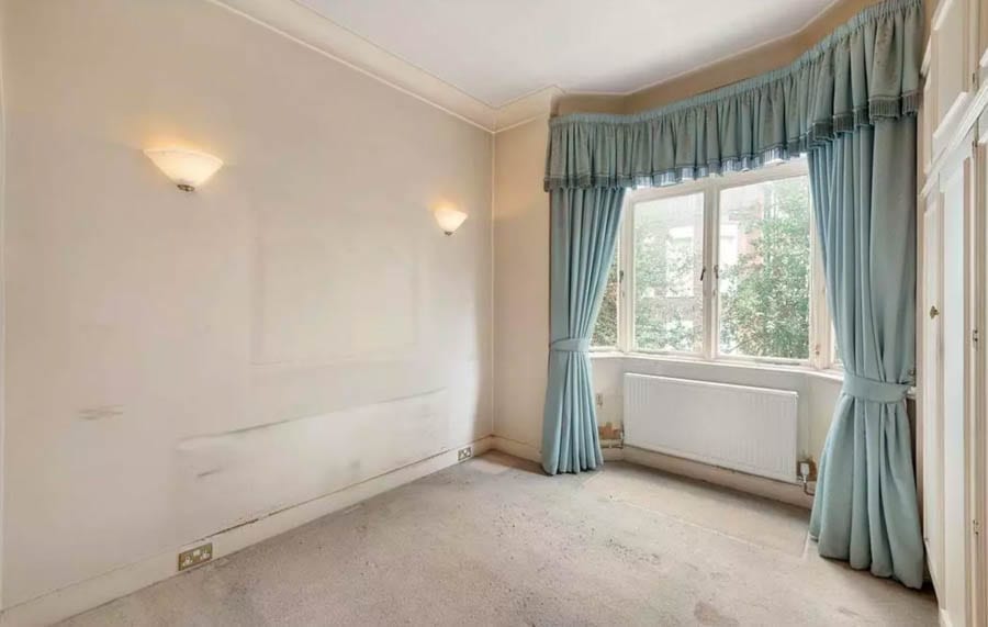 Priced at just £175,000 ($230,000, €208,000 or درهم844,000) or £232 per square foot ($305, €276 or درهم1,119 per square foot), the catch with this property is its lease – which is extendable, but just 3 years and 6 months currently. It has a large south facing reception room with a ceiling height of 11’8” and French doors, a small kitchen, one bedroom and a bathroom.