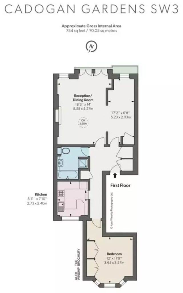 A 754 square foot apartment on the first floor of a red brick Victorian building in Cadogan Gardens, Chelsea, SW3 has gone on sale for what seems like a bargain sum.