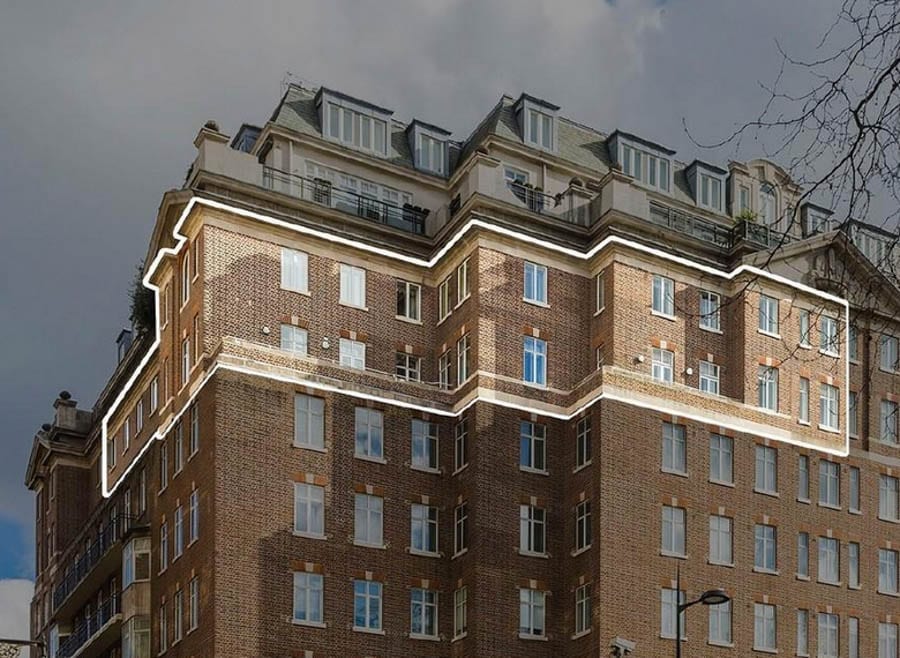 Split over the seventh and eighth floor of a portered building named Fountain House, the apartment offered extends to 6,897 square foot and includes 4 reception rooms, 2 kitchens, 10 double bedrooms, 2 staff bedrooms and 10 bathrooms. Its principle reception room is 38-foot long and its dining room is described as “easily sitting 22 guests”.