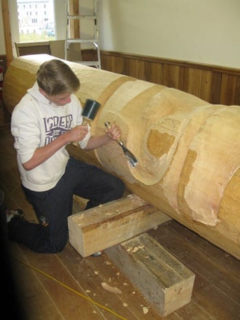 Whilst we were there, Wolf Smarch was working on another totem. When he allowed my hard to impress teenage son to help him complete a section, even he thought that was incredibly cool.